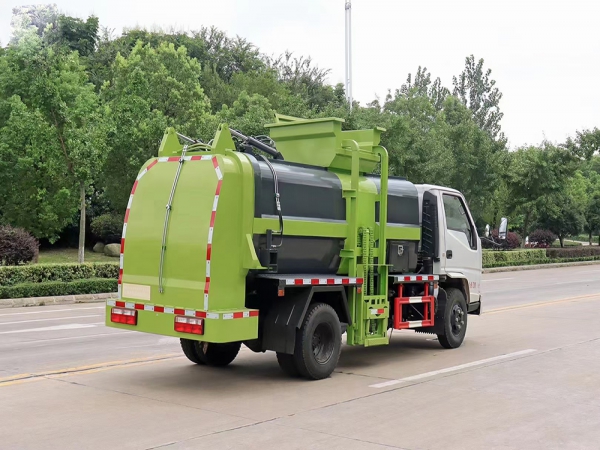 餐厨垃圾车,又称:泔水车,可根据客户对垃圾装载量的不同要求选用类型不同的底盘,可装载2-10吨垃圾的餐厨泔水车,承载餐厨泔水容积为圆形或方形罐体,有效容积达到90%,罐体内分上、下两层,下层为固液分离后污水收集箱,污水箱两头高,中间低,低端设有出水口,以保证污水排放干净。