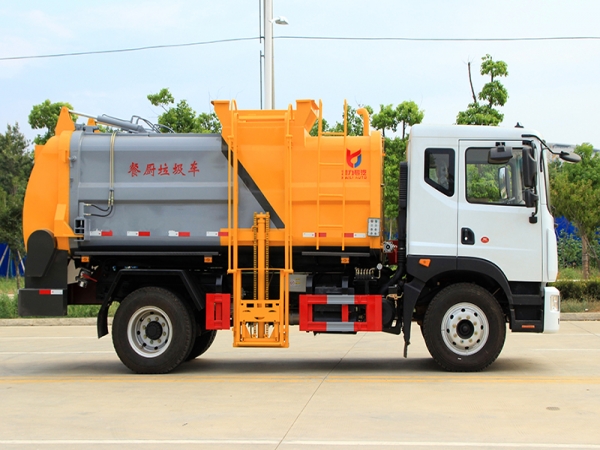 5、密闭排料(选装):不用后门打开,液态垃圾可以通过管道路排出,固态垃圾可以通过旋转绞笼挤压排放出车厢。