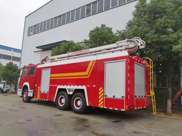 车型概述 | 重汽豪沃举高喷射消防车是我厂采用重汽原装底盘ZZ5347V4647E1基础上改装而成,整车结构紧凑;专用部分由操纵台、供水系统、电气系统、液压系统、折叠伸缩臂、电动遥控消防炮等组成,主要用于高层建筑以及石油化工装置、油罐、仓库等高大建筑物的火灾扑救,消防队员可通过电动遥控消防炮在高空中从多个角度灵活地喷雾、喷水或者喷射泡沫进行扑救一般性火灾,是理想的消防装备。。 | ||||