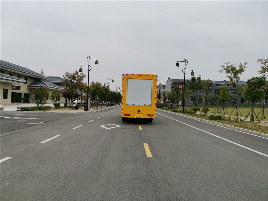 选装配置:选装行李架、爬梯、车顶工作台;选装不同形状、结构的警示灯;选装中隔断(可选择开门)、车身两侧可选开上掀门、盲窗、侧开门;花纹铝板;加装设备工具柜、配电箱、发电机组、水泵、电焊机、空压机等线路安装外接电源系统、(室内灯光照明、探照灯、高杆照明灯等);绕线盘,还可根据用户不同需求加装不同的维修抢险设备、车身制作专用图案或标识。