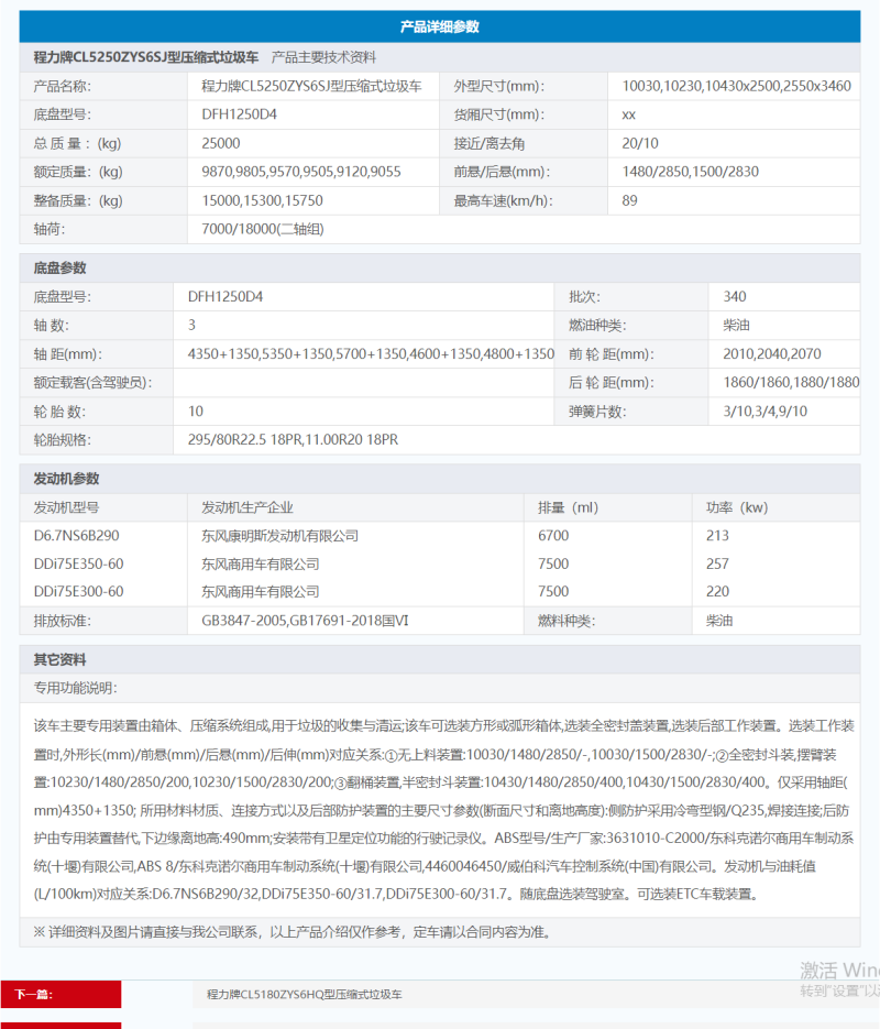CL5250ZYS6SJ型压缩式垃圾车