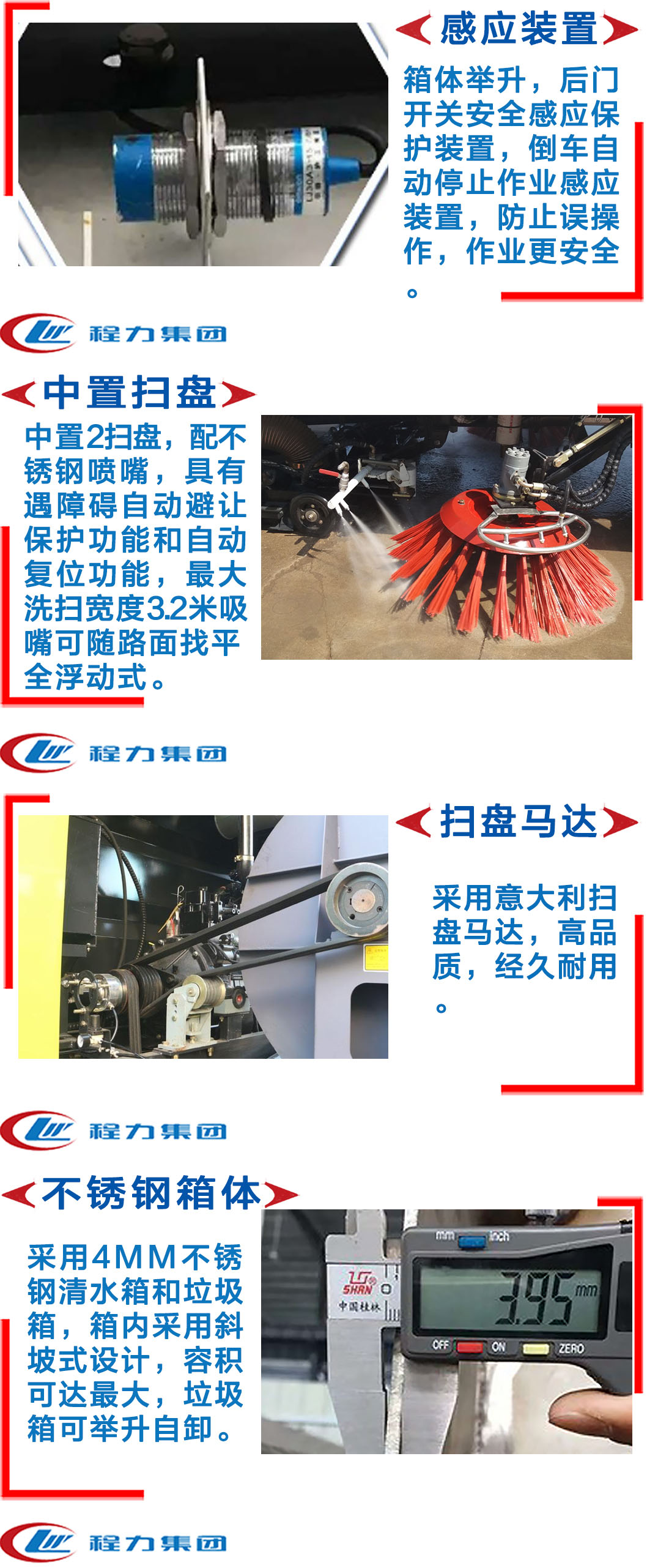 | 扫盘降尘系统 | 电动水泵,洒水喷嘴。与高压清洗系统共水滤、水箱等 | ||