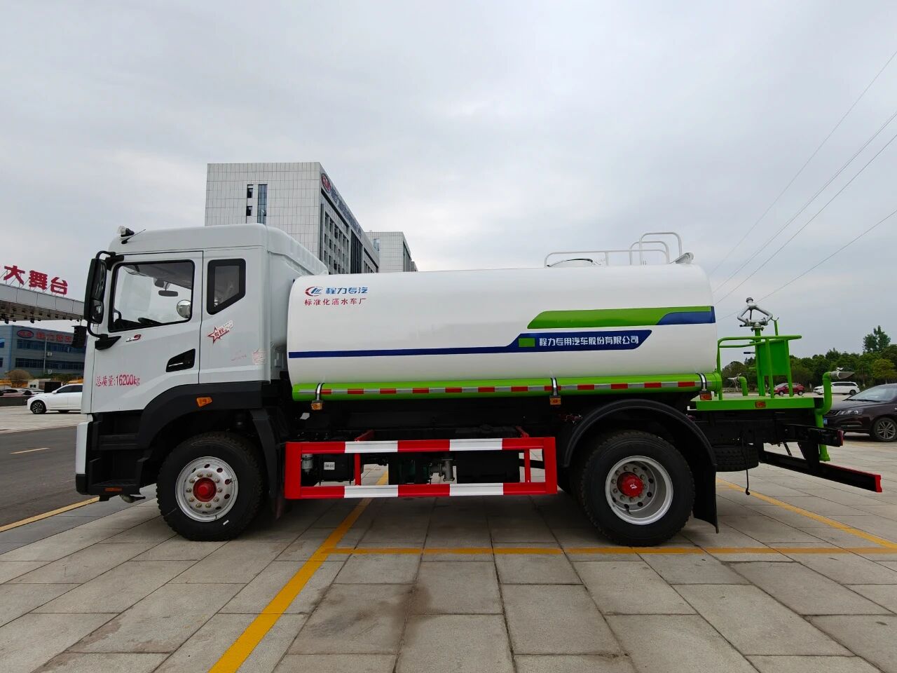 2. 高可靠底盘架构----承载系统:采用250mm双层直通大梁(局部三层),前桥德纳4.5T/后桥德纳8T(速比4.33-4.875),车架最大允许载荷18吨。例如,12方吸污车在罐体满载时,车架应力分布均匀,长期使用无变形。悬挂与制动:前麦弗逊独立悬挂+后多片簧结构,配合四轮碟刹+ABS+EBD,制动距离较同类产品缩短15%。部分车型可选气囊悬架,提升复杂路况下的稳定性(如高空作业车)。