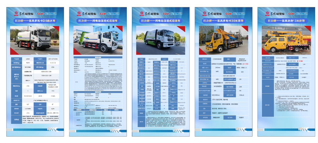 程力东风股份第九代新产品及轻卡工程作业车参数、配置展示牌
