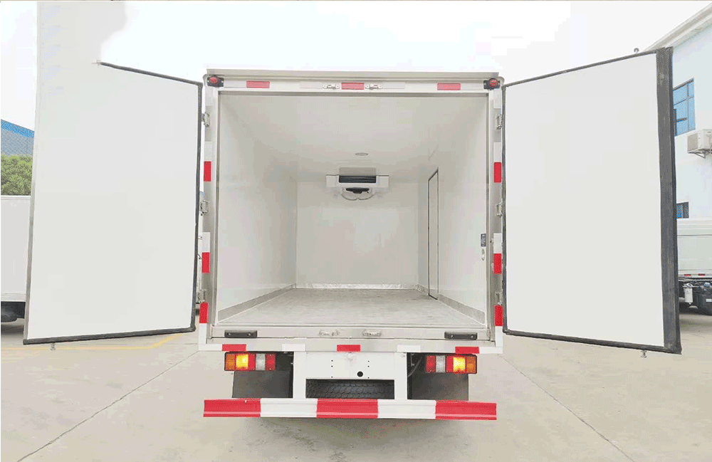 【厢体标配】内外2.0玻璃钢,中间保温板,厢体8CM厚,底板铝花纹板。