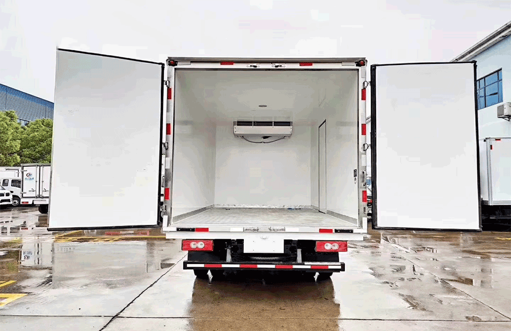 | 其他 | 1.选装导流罩;选装两侧单、双、无侧开门;选装同等功率制冷机组,外观形状可不同.2.ABS型号及厂家对应关系:液刹:ABS系统型号:YF8;生产企业:武汉元丰汽车电控系统有限公司.气刹:ABS系统型号:ABS-VI.E;生产企业:广州瑞立科密汽车电子股份有限公司.3.F2.8NS6B131、F2.8NS6B156发动机最大净功率分别为93kw、112kw.4.选装前围及前部灯具,前下视镜为选装件可不装,选装排半驾驶室,排半驾驶室对应货箱内部长度为3700mm,单排驾驶室对应货箱内部长度为4080mm.5.侧防护的连接方式是与货箱横梁螺栓连接,侧防护材料为冷板B-2.0/20,选装材料为20号钢的侧防护、选装铝合金6061-T6侧防护.后防护连接方式是与车架纵梁螺栓连接,后下部防护装置材料为Q345A,选装材料为AL6082-T6的后下部防护装置。后部防护装置截面尺寸100×50mm,后防护距离车辆离地高度470mm;6.发动机F2.8NS6B131、F2.8NS6B150、F2.8NS6B156对应油耗值为10.8;7.货厢顶部封闭,不可开启.8.准拖挂车总质量为3500kg,中置轴挂车的牵引杆深入量750mm,中置轴牵引杆连接器最大负荷350kg. | ||