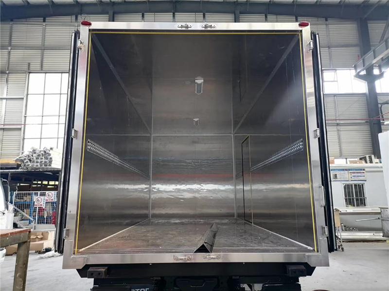 厢体配置:厢体板采用市面上最先进技术-负压加热抽真空技术,保温性能达到国家A级标准厢体。内部尺寸为: 容积为 立方,厢体内外面料采用最新款纳米玻璃钢(不吸光、隔热性好、硬度强、抗氧化)厢体厚度为8cm ,内衬骨架为防锈处理优质轻钢型材镀锌管,保温材料为无空隙填充聚氨酯发泡,厢体底部为铝合金花纹板或选平面纳米玻璃钢,厢体采用镀锌不锈钢包角,加厚型铝合金包边,后门框为不锈钢,加厚型不锈钢后门]合页及锁件,全车所有不锈钢部位均使用食品级304不锈钢制造,厢体内部采用ED照明灯及厢体示宽灯。